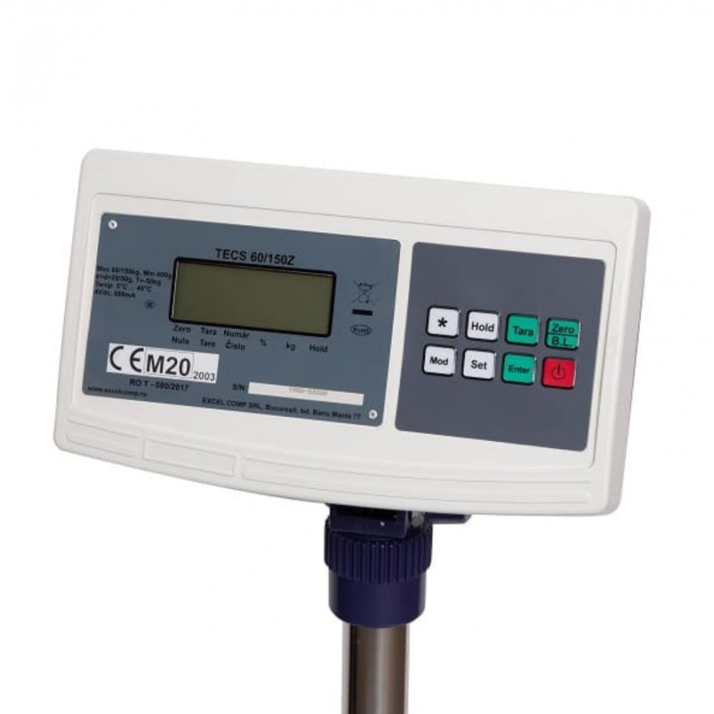 It is a dual-range platform scale, meaning the weighing division is 50 g up to 150 kg, and 100 g in the 150–300 kg range.